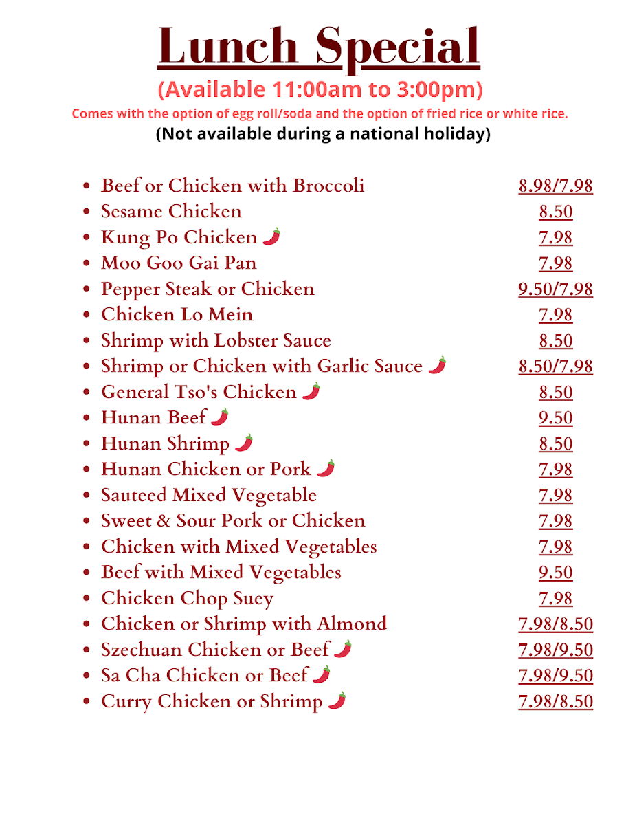 Beef Or Shrimp Fried Rice 5.45 8.95